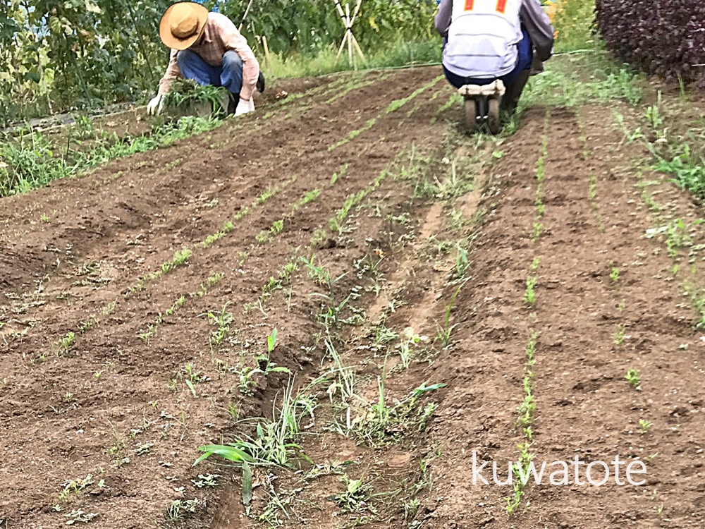 芽が出たら、何度か間引きをすることで、残した株の根を太らせます。