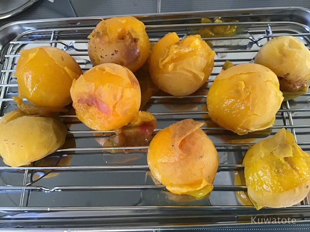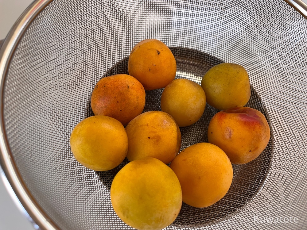 - 種は、梅を茹でて冷ましてから手で握りつぶすようにするとすぐ取れます。