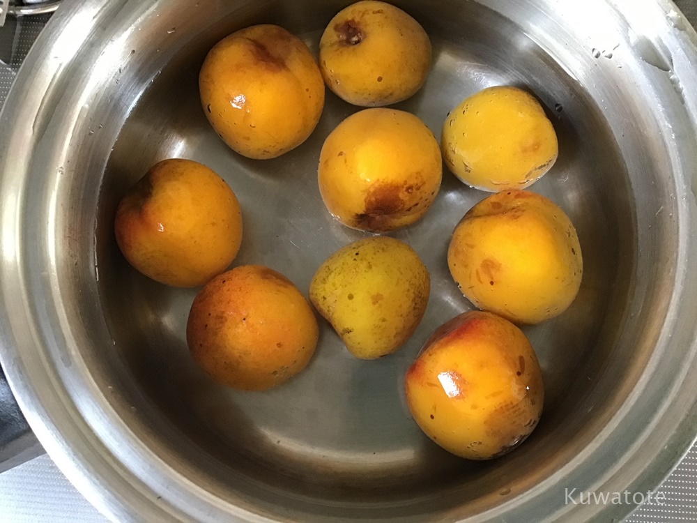 お鍋に洗った梅とかぶるぐらいの水を入れる。